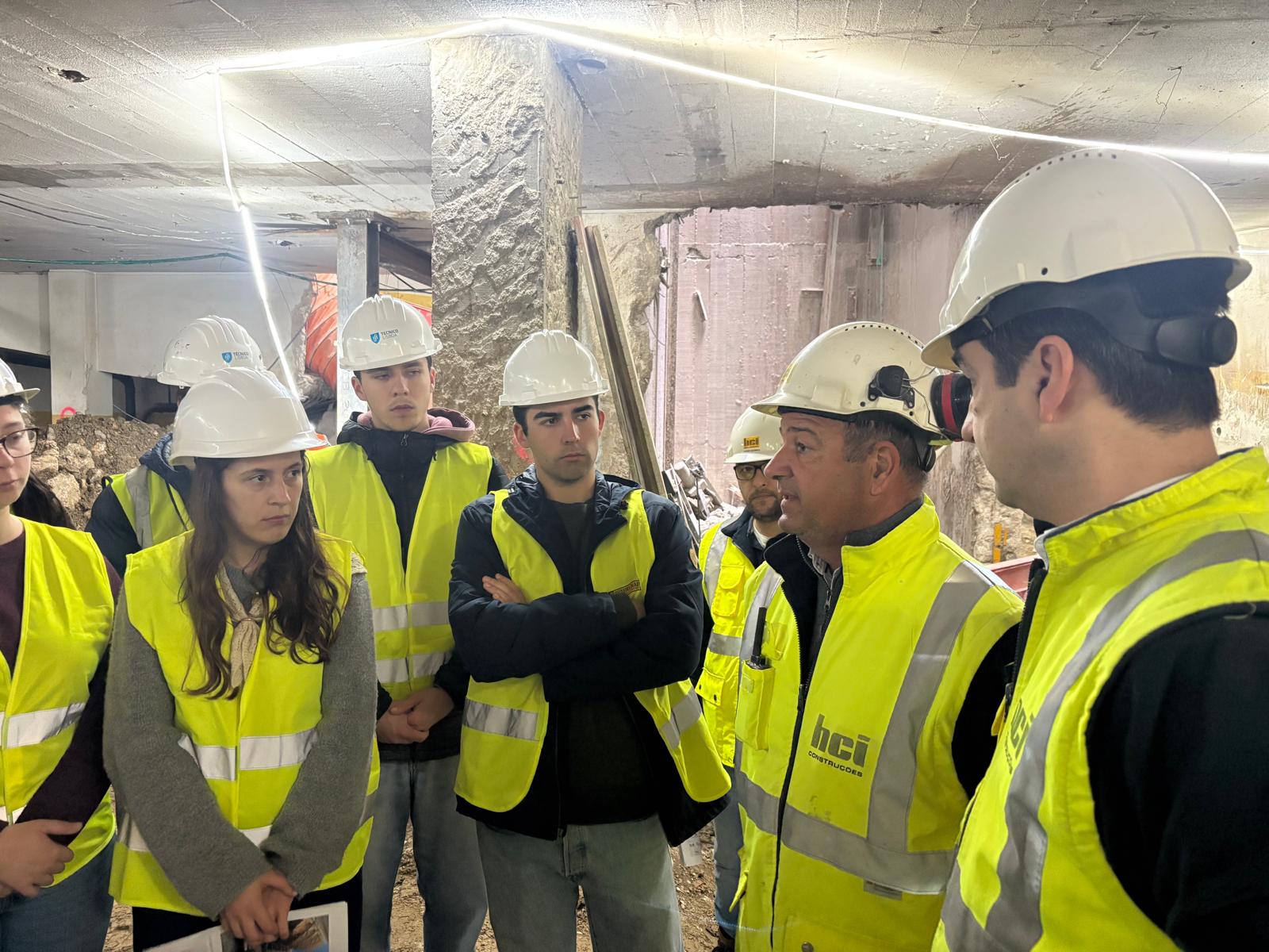 Estas visitas permitem aos estudantes contactar diretamente com processos construtivos em contexto real, complementando a sua formação académica com uma perspetiva prática sobre os desafios da engenharia civil e da gestão de obra.